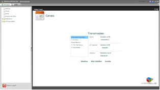 Na tela de capa apresenta a lista de canais com quantidade de usuários conectados, total de acessos e o que está sendo transmitido no momento.